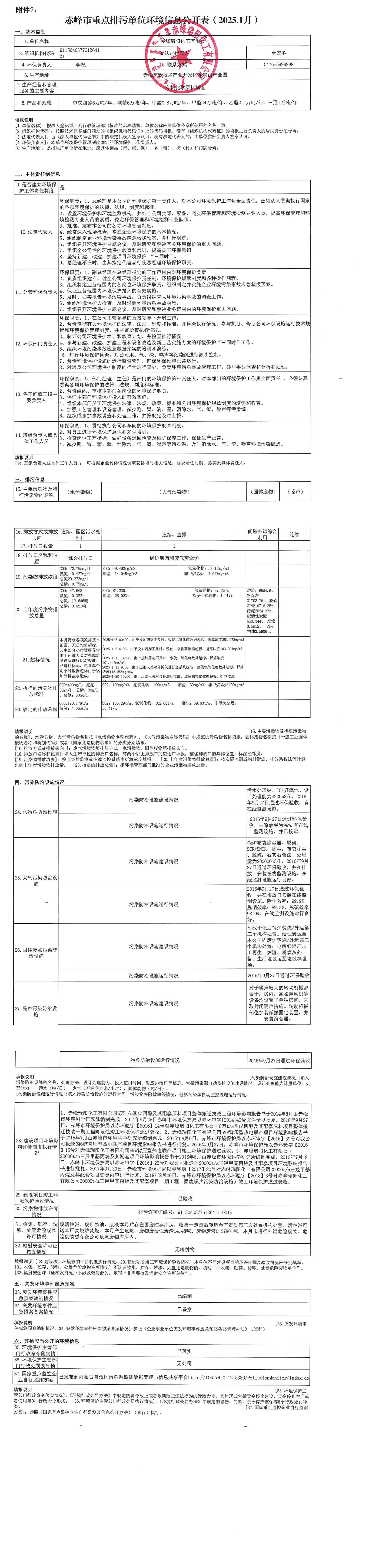 赤峰市重點排污單位環(huán)境信息公開表【2025.01】